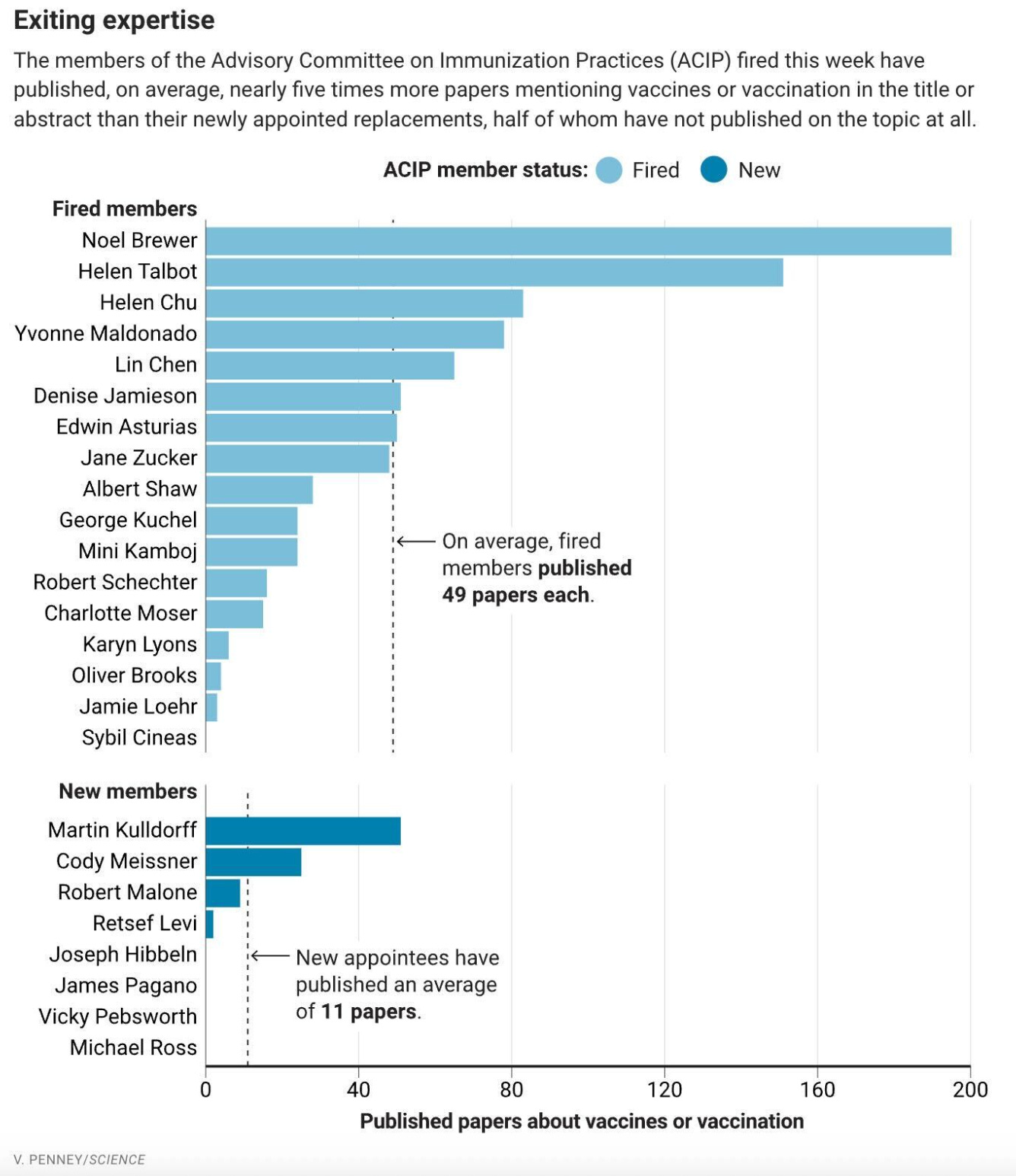 Credibility: Several new members have little or no vaccine experience. Peer-reviewed publications aren’t a perfect measure, but they’re a useful proxy, and this group severely lacks vaccine training compared to the last committee. This seems important if they are making vaccine decisions for 330 million Americans.