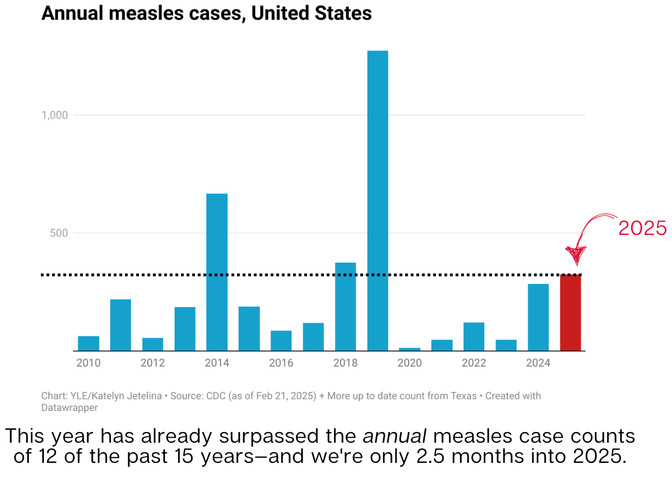 As of Friday, the U.S. has reported 326 measles cases—more than the annual total in 12 of the past 15 years, and it’s only March.