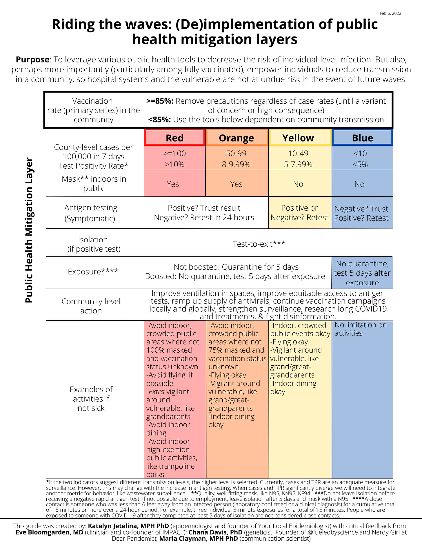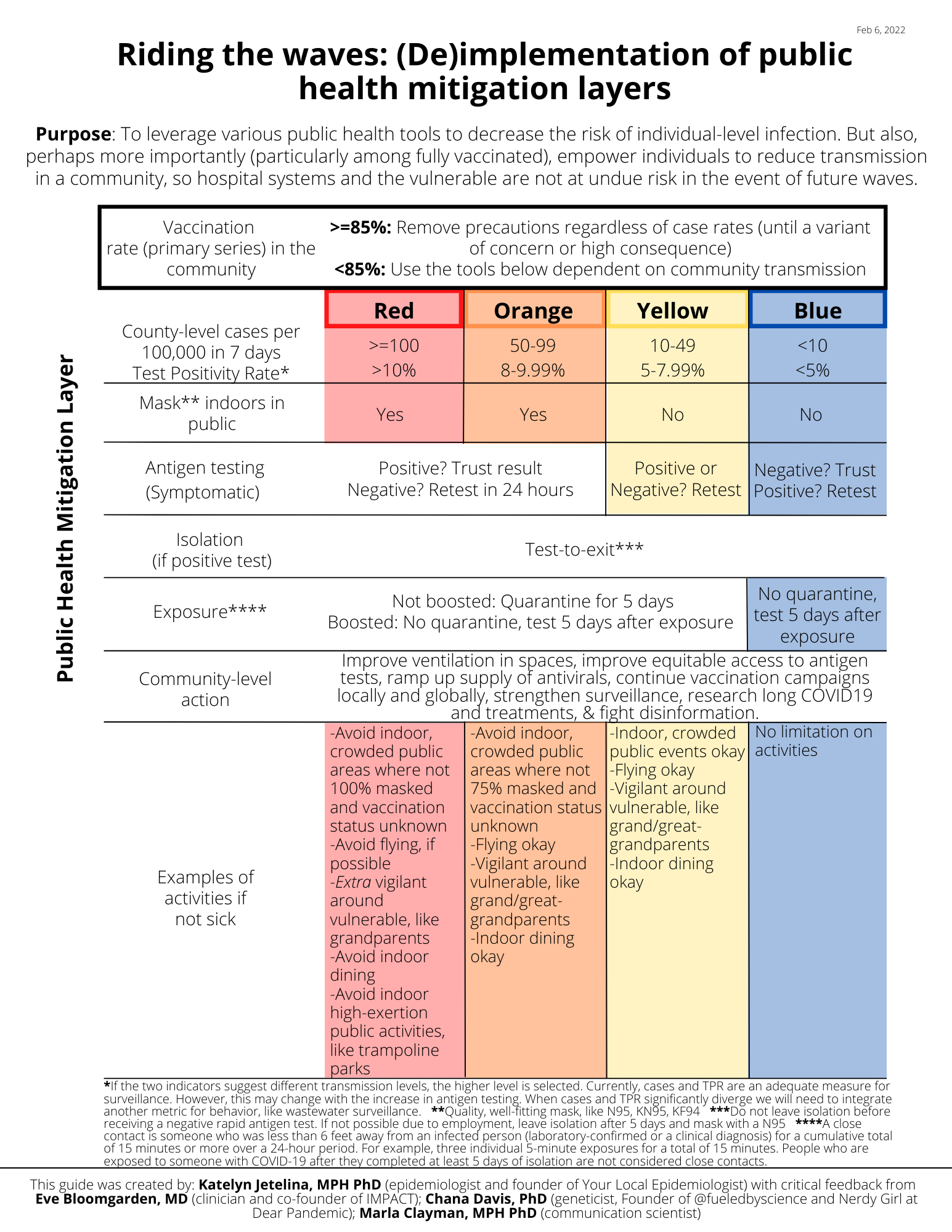 I find both sides problematic, because reality is not binary and the future is unknown. We need a solution that addresses the ebb and flow of viral dynamics. I strongly believe we do this by riding the waves and leveraging the tools we have at hand. This will protect individuals and populations when transmission is high and ensure a much needed break with transmission is low. I worked on a framework (for longer than I want to admit) to reflect this line of thinking. In constructive, critical, and lengthy discussions with colleagues, this is what we came to: