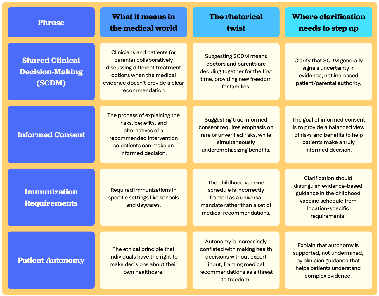 So here’s a breakdown for you: What do these phrases actually mean in the medical world? Where’s the rhetorical twist leading to confusion and distrust? And importantly, whether you're a clinician, community leader, health department, or parent talking to other parents, what's the best way to talk about this?