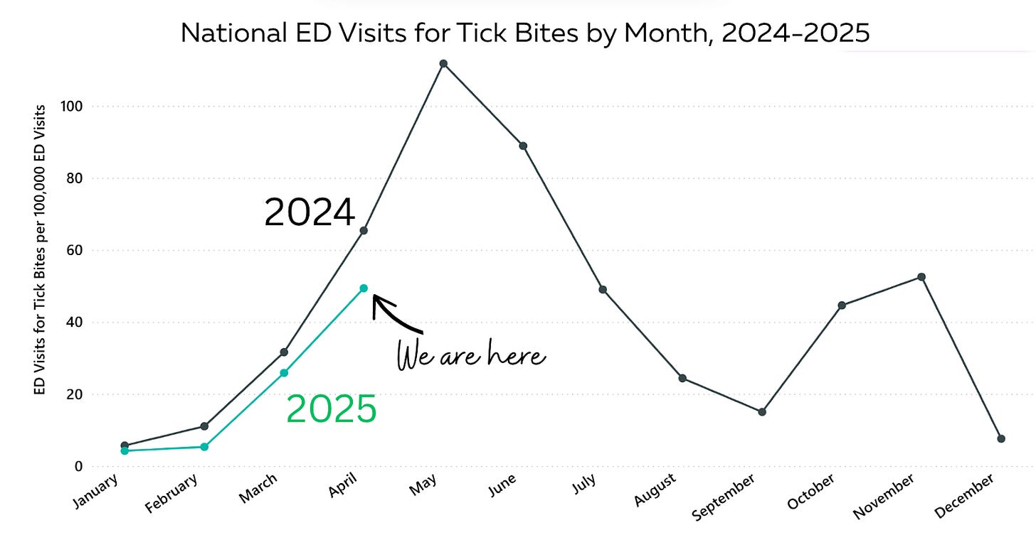 Not all ticks carry disease. Risk depends on the species, geography, and the duration of a tick’s attachment. Currently, tick-borne illnesses are most concentrated in the Northeast, with emergency department (ED) visits at 115 per 100,000 people.