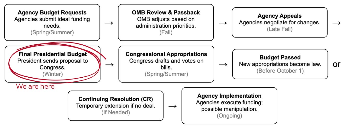 Unlike previous executive actions, these cuts are moving through the normal budget process—making them harder to block and more dangerous long term. They are very dramatic compared to previous budget proposals. Importantly, this is a recommendation and/or political pressure from the Executive Branch. It’s not law or a guarantee. The next step is for Congress to draft, debate, and vote on actual funding bills. Then it’s put into law.