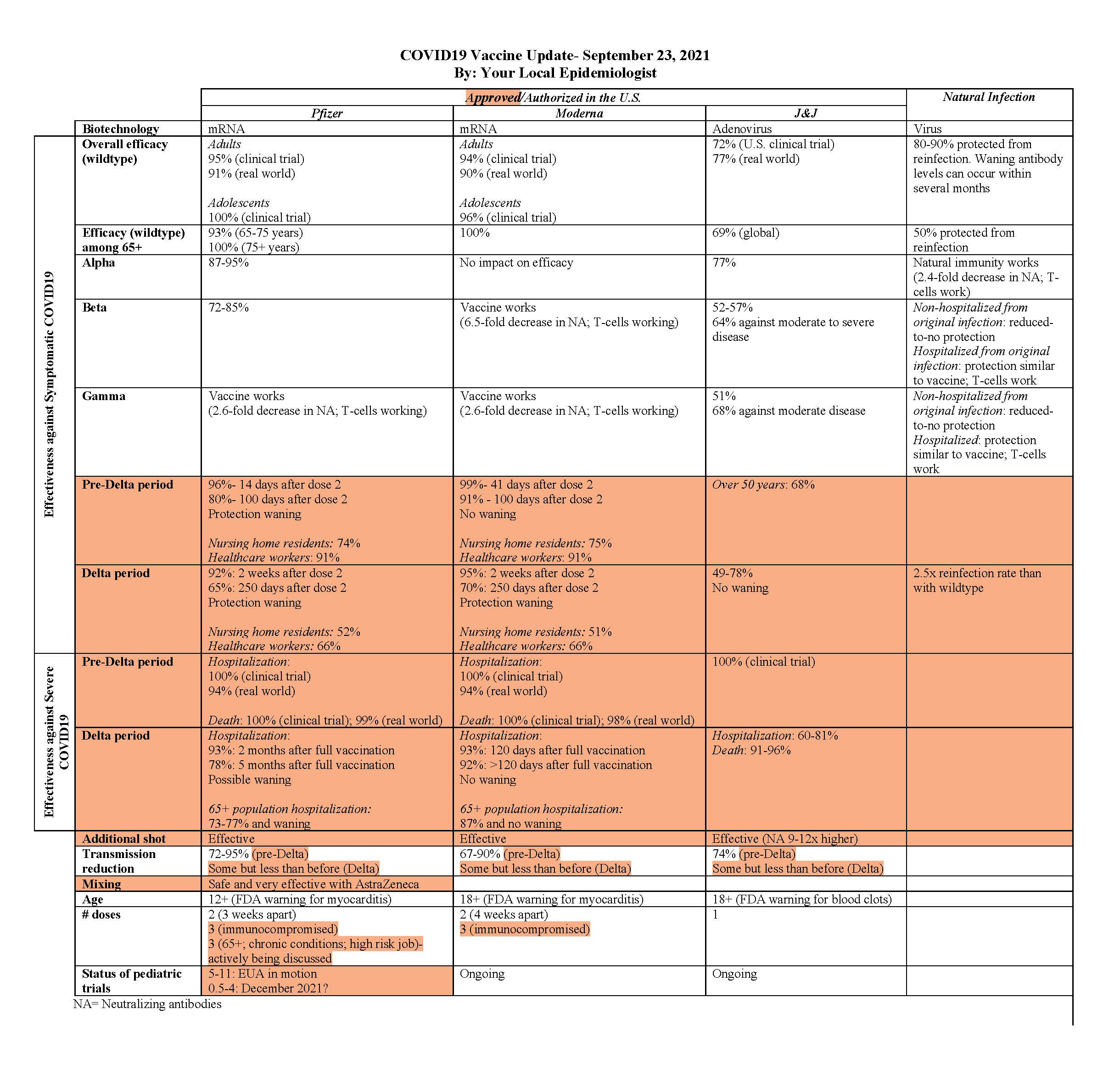 It’s been a while since I updated my vaccine table. And, honestly, things are getting so complicated so fast that I’ve been actively avoiding it. But I keep getting requests, so here it is. Peach colors means changes/updates from last table.